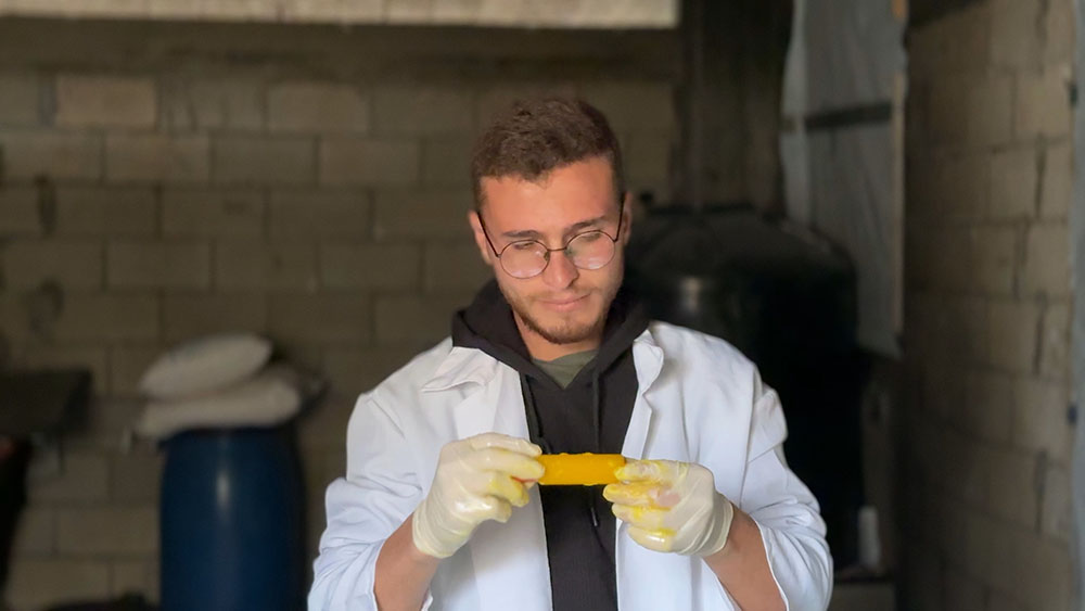عبد الكريم أبو لبن (23 عام) يعيل أسرته بعد وفاة والده. وهو خريج جامعي من تخصص آلات مكتبية، لم يجد فرصة عمل في مجاله فأصبح يعمل في مجالات مختلفة.